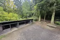 Sehr schoene Stelle und (wie wir gern haben) kein Luxus, nur das Notwendige: Wasser, Toiletten, Stellen fuer Zelten und ein Dach fuer schlechtes Wetter. Liegt schoen am Rande des Waldes.