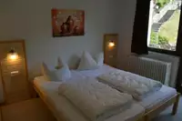 Alle Zimmer im 1. und 2. OG mit Dusche, WC und Balkon, TV im Gastraum, gratis W-Lan. Komplett eingerichtete Gastroküche. Zwei große Aufenthaltsräume (50 und 35 Plätze).