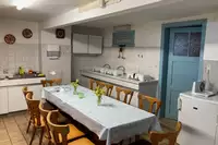 Gesellschaftsraum geteilt; 42 Sitzplätze, Fernsehraum 8-10 Sitzplätze, Parkplätze auf dem Grundstück, komplette Küchenausstattung; 1 Gaskochstelle, E-Herd, 2 Kühlschränke, Vorratsraum. Sanitäre Anlage: 3 Duschen, jedes Zimmer mit Warm- und Kaltwasser. 1 Kinderbett und 1 Hochstuhl vorhanden.Freizeit