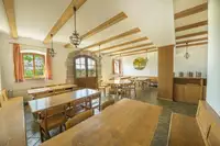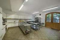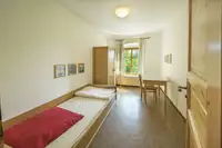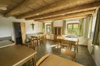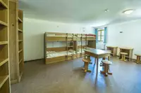 Gemeinschaftsräume: eine Stube, der Tagungs-/Unterrichtsraum (50 m²), ein Speiseraum und eine geräumige Küche, eine Leseecke mit zahlreichen Büchern, ein Freizeitraum (140 m²) für Werken und Spiele, auch für Feste geeignet, Meditationsraum für Gottesdienste, z. Musizieren und für Vorträge (Verdunkelung, Projektionsleinwand 250 x 250 cm)Bemerkungen