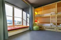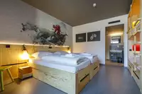 192 Betten, aufgeteilt auf Zwei-, Vier- und Sechsbettzimmer, alle mit Dusche/WC. Drei Zimmer sind barrierefrei. Speisesaal mit Frühstücksbuffet, moun10-Bar, hauseigene Sauna und Fitnessraum, Ski- und Mountainbike Keller sowie eine Tiefgarage.Über den Tellerrand genießen
