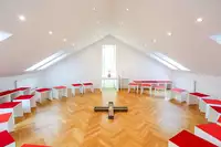 Für die individuelle Freizeitgestaltung können sich unsere Gästen u.a. beim Tischtennis, Poolbillard und am Riesenkicker entspannen. Für Präsentationen oder Film-/Diaabende steht ein Beamer zur Verfügung. Ebenso können unsere Gäste ein Klavier für musische Stunden nutzen.Der Raum der Besinnung im Altbau eignet sich bestens für Andachten, Meditationen, Taizé-Gebete oder Zeiten der Stille. Das grüne und weitläufige Außengelände verfügt über einen Grill-und Lagerfeuerplatz sowie Biertischgarnituren und lädt zu geselligen Stunden ein.