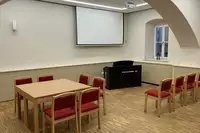 Kirche, Beamer, Pinwand, Flipchart, Klavier, Ballspiele, Tischtennisplatte, Gesellschaftsspiele, Autoparkplätze (außerhalb des Pfarrhofes)Freizeit
