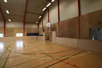 - 1 große Sporthalle mit Banden, Handballtoren und Volleyballfeld