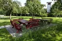 Im Erdgeschoss befinden sich zwei kleinere Gruppenzimmern und ein großer Vortragssaal für Veranstaltungen. Des weiteren liegen dort der große Speisesaal für Gäste und ein Meditationsraum. Weitere Schlaf- und Veranstaltungsräume befinden sich in der Pilgerherberge & Gästehaus Edeltraud. In beiden Häusern herrscht Rauchverbot. Haus Benedikt liegt im Zentrum des Klosterareals, vor der Tür befindet sich der liebevoll gepflegte Klostergarten mit schönen Sitzgelegenheiten.