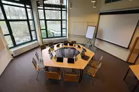 Wir waren als Kleingruppe rundum zufrieden mit dem Tagungshaus. Sehr schöner und für die Gruppengröße perfekter Seminarraum, gut abzudunkeln für Beamerpräsentation auch an sehr sonnigen Tagen, reichlich Pinnwände und Whiteboards an den Wänden; Kühlschrank für Tagungsgetränke (preiswert!), viele kleine Sitzecken im Freien für Kleingruppenarbeit im Sommer, Kicker und Billiard kostenlos, alle AnsprechpartnerInnen im Haus ausnahmslos sehr freundlich und hilfsbereit, sehr gutes Essen, Frühstücksbuffet in Hotelqualität, Espresso/Cappu nach dem Mittagessen inkl. :-)