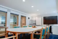 Sporthalle (18x36), Fitnessraum, Gemeinschaftszimmer, Trockenraum, Fotokopiergerät, Beamer, WLAN, Internetzugang, Tagungsmedien, Laptop, Fernsehgerät, DVD-Player, Stereoanlage, Ballspiele, Tischtennisplatte (indoor), Fußballkicker, Flipcharts, Gesellschaftsspiele, Stand-up-Paddling, Skilanglaufausrüstungen, Skischuhe, Skikes40 Autoparkplätze