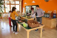 Wir waren 3 Tage mit einer kleinen Gruppe von Kitakindern im Aktivhotel. Es waren, trotz des eisigen Wetters, wundervolle Tage. Wir wohnten auf der Wanderetage, welche perfekt für kleine Gruppen konzipiert ist...es war sehr gemütlich und ruhig. Der kleine Spielplatz auf dem Gelände wurde von unseren Kindern sehr gern bespielt ( mit Trampolin), das Lagerfeuer machen war auch ein großer Pluspunkt und die Umgebung und herrliche Gegend um das Aktivhotel herum ist natürlich ein Traum. Das Morgen- und Abendbuffet war richtig toll und die Kinder haben gestaunt, was es alles gibt. Unsere Lunchpakete während unserer Ausflüge waren auch reichlich gefüllt und immer mit einem lieben Spruchzettel für uns versehen. Das Personal ist sehr zuvorkommend und superfreundlich. Wir haben uns total wohlgefühlt und werden in den nächsten Jahren sicher wieder ein paar Tage nach Halbstadt in diese Unterkunft ausschwirren.