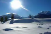 Ein paar Schritte weiter gibt es für die Kinder einen kleinen Rodelhang, zum Herumtollen im Schnee. Im Sommer weiden hier die Kühe der Eigentümer und genießen die herrlichen Berggräser.