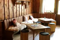 Die große urgemütliche Gaststube bietet Platz für 80-90 Personen, und ist auch hervorragend für Seminare/ Tagungen oder Familienfeste geeignet. Trotz der Größe des Gruppenraums,ist er auch für kleinere Gruppen nicht ungemütlich. Die Wände sind mit Holz verkleidet und strahlen somit Wärme aus.