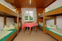Doppel- und Mehrbettzimmer alle mit Waschbecken, meist Etagenbetten, 6 Zimmer mit DU/WC.