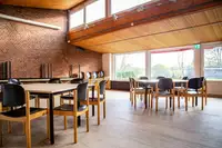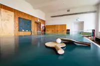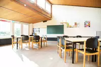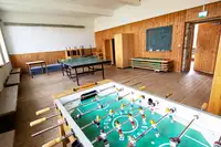 Aula/Turnhalle, Kaminzimmer m. Schwedenofen, Tischtennisplatte, Kicker, TV, Video, Sjoelback-SpielFreizeit