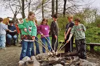 Spielwiese, Baden im Goldensee (300 m), Lagerfeuerplatz, Wandern, Radfahren, Museen, Kanufahren, Außenbackhaus, Wikingerschiff "WikThor"Ausflugsziele