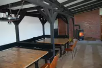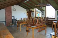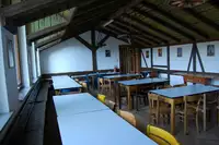 Aufenthaltsraum: Direkt am Eingang des Erdgeschosses befindet sich ein Aufenthaltsraum mit Holzofen. Er bietet Platz für ca. 35 Personen und kann auch wunderbar als Seminarraum genutzt werden.Saal: Im ersten Stock befindet sich der Saal, welcher ebenfalls über einen Holzofen verfügt und sehr gut für Besprechungen oder als Aufenthaltssaal geeignet ist. Hier ist Platz für ca. 45 Personen geboten.