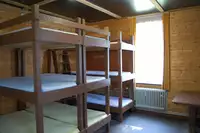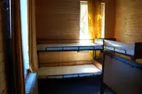 So ist Platz für 40 Personen geboten. Es handelt sich jeweils um Zweier- oder Dreier-Stockbetten.
