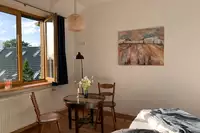 Bei uns im Haus gibt es einzelne Fahrräder zu mieten. Auch ein mobiles Badmintonnetz, ein Tischkicker und ein elektronisches Klavier sorgen für Abwechslung in der Freizeit. Ein Grill und verschiedenen Gesellschaftsspiele für den Garten können Sie auf Anfrage ausleihen. Eine Sauna kann mit kurzer Voranmeldung von extern gemietet werden.