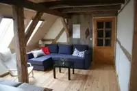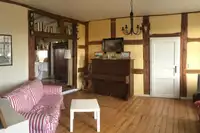 Das Jagdzimmer bietet Platz für zwei Personen in einem Schlafzimmer, großes Bad, Küche. Eine alte Feuerstelle als Kamin bietet Flair an kalten Abenden. Die Wohnung ist liebevoll mit alten Möbeln eingerichtet und hat ein Klavier, das zwar verstimmt ist, aber immer noch seinen Dienst tut.