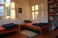 Die Atmosphäre des Hauses ist geprägt von hohen, hellen, Räumen mit großen Fenstern. Auf zwei Etagen befinden sich sechs geräumige Zimmer, liebevoll gestaltet, sowie zwei Bäder - Trockentücher für die Hände, Fön und Wärmflaschen in allen Bädern vorhanden.Bei einer Belegung mit 15 Personen ist viel Platz in den großen Räumen, es können aber auch Matratzen dazu gelegt werden und einige Personen mehr unterkommen.