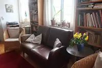 Als AUFENTHALTSRAUM wird gern die gemütliche Küche genutzt. Die Diele im ersten Stock mit dem historischen Kaminofen dient ebenfalls als Aufenthaltsraum. Das "Musikzimmer" mit Klavier, Gitarre und Steeldrum hat zwei ausziehbare Schlafsofas. Es kann wahlweise als Schlafraum oder als kleiner Gruppenraum genutzt werden.
