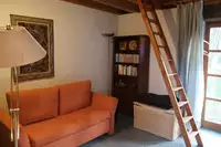 Am Teich ist ein kleines Apartment im ehemaligen Waschhaus mit Bad und Kochecke. Außer dem ausziehbaren Schlafsofa gibt es noch eine Empore zum Schlafen,