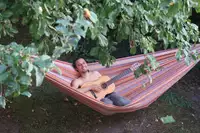 Übernachtung im Zelt oder Wohnwagen nur zusammen mit der Hausbelegung.