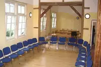 Mehr als Sie schaffen werden, egal ob Ihr Interessenschwerpunkt auf Naturerlebnis, Kulturellem oder Historischem liegt. Urwald Hainich mit Baumkronenpfad, Thüringer Wald, Harz, Kanufahrten, Erlebnisbergwerke, Wartburg, Erfurt, Weimar...mit 2 Gruppenhäusern, Kirche, Seminarhaus "Priorei", Gewölbekeller. Verpflegung von SV bis Vollservice, auf Wunsch auch in Bio- Qualität. Erstklassiger Koch. Lage: 2 km vom Mittelpunkt Deutschlands, inmitten einer mittelalterlichen Altstadt, gleich am Stadttor. Optimal für bundesweite Tagungen und Seminare, stressfreie Behindertenfreizeiten, Klassenfahrten, Chöre und Orchester. Wir bieten Programminhalte und päd. qualifizierte Betreuung nach Wunsch.
