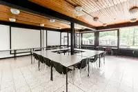 In unserem Gästehaus können wir in 21 Zimmern (buchbar als Einzel-, Doppel- oder Dreibettzimmer) bis zu 59 Gäste beherbergen. Jedes dieser Zimmer verfügt über ein eigenes Bad mit Dusche und WC.Das Tagungshaus bietet sowohl eine optimale Arbeitsumgebung als auch eine Ausstattung unserer Tagungsräume mit zeitgemäßer Seminartechnik. Ihnen stehen sechs Säle von 33 m2 bis 180 m2 Raumgröße zur Verfügung. Tische und Stühle werden Ihren Vorstellungen entsprechend gestellt.