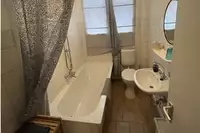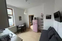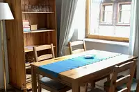 Das Haus ist alte Fabrikgebäude, hat höher Decken und großes Außenbereich mit dem Schloss Ansicht, mit Stuhle und Tische zu gemeinsamen Mahlzeiten oder Zusammensitzen. Es gibt im Hof auch Spielbereich für Kinder, im Ort sind die Spielplätze ebenfalls vorhanden.
