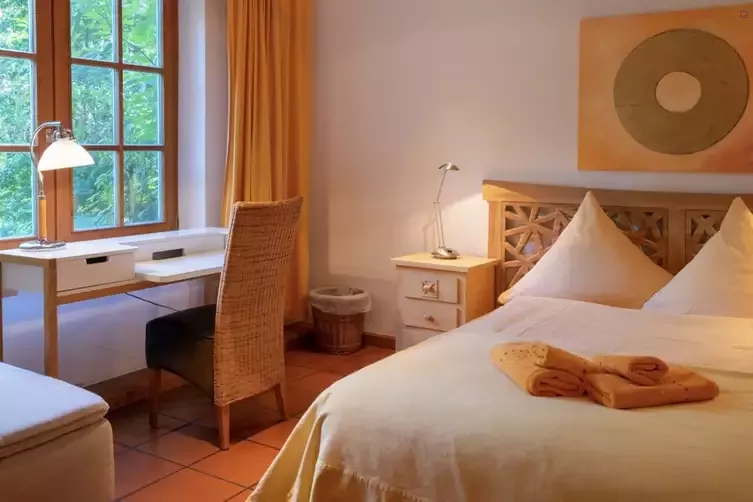 Es stehen Einzel-, Doppel-, oder 3BZ zur Verfügung. Zusätzlich kann bei Vollbelegung auch im Dormitory geschlafen werden. Die Gästezimmer sind liebevoll und individuell mit Voll-Holzmöbeln eingerichtet. Wir bevorzugen Holzböden, Naturmaterialien und angenehm warme Farben. Die Zimmer verfügen überwiegend über eigene DU/WC und Föhn.Vier Seminarräume mit 240 m² im großen Seminarraum, 2 x 110 m² und mittleren Seminarraum mit 60 m². Im Haus gibt es eine Vollholz - Sauna, Meditationsraum, Lesezimmer, Ruheraum, Musikanlage, 30 Autoparkplätze