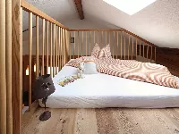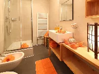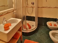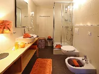 Teilweise mit Balkon, Wohn- Essraum mit großem Tisch und bequemen Sofa, geräumiges Bad mit WC, Bidet, Kabinendusche mit Massagebrause, Föhn.