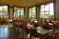 einfach nettes Haus. schöne ruhige Lage, ländlich, also wer die natur und ruhe sucht, für den ist das haus perfekt. man wird sehr nett und familiär behandelt, begrüßt, bewirtschaftet und verabschiedet. fahre hier schon seit bestimmt 8 jahren hin!!! kann ich nur jedem empfehlen. die zimmer bieten alles was man braucht, jugendunterkunftsgerecht. das essen ist spitze, kein "kantinen-fraß", einfach lecker. genug möglichkeiten, baden geht schnell mit dem bus im nächsten ort, die haben da eigene pferde, schafe etc. reithalle, kutschen, spielgeräte, billard, kicker uvm. wenn man mag kann man sogar hochseilklettern auf dem gelände machen!!! kann das einfach nur empfehlen!!!!