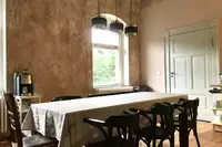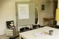 Wartesaal und Güterschuppen sind nur in den warmen Monaten buchbar. Da die Ferienzimmer ganz regulär vermietet werden, ist im Buchungskalender "auf Anfrage" hinterlegt. Bitte kommen Sie mit Ihrem Terminwunsch auf uns zu.Equipment und Material zur Durchführung von Workshops (Moderationskoffer, 2 Stellwände, 1 Pinnwand, 1 Flipchart, Beamer, Leinwand) sowie Bestuhlung sind vorhanden.