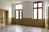 Der alte Wartesaal bietet sich als Seminar-/ Workshop-Raum an für kleine Teams oder Vereine. Genauso ist er für Foto-Shootings, Videodrehs oder kleine Kulturveranstaltungen wie Lesungen, Milongitas o.ä. nutzbar.Er teilt sich auf in eine quadratische Fläche von ca. 5 x 5 m und einen schmalen Bereich von 5 m Länge und knapp 2 m Breite, der an einer Seite von einer durchgehenden Pinnwand begleitet wird. Beide Bereiche sind durch den unterschiedlich gestalteten Boden in schwarz-weiß auch noch einmal optisch sehr schön getrennt.