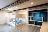 Das Berghaus Rieder verfügt neben den 8 Schlafräumen in verschiedenen Größen über einen großen Aufenthaltsraum, eine kleinere Sitzecke, sowie einen Speiseraum und einen Vorraum, die zum gemütlichen Zusammensein einladen. Außerdem befindet sich im Keller des Raumes ein Tischtennisraum, der zusätzlich als Partyraum genutzt werden kann. Zudem verfügt das Haus über einen Beamer, der ausgeliehen werden kann und über ein stabiles WLAN Netzwerk. Auch Parkplätze befinden sich direkt vor dem Haus.Küchenausstattung: Großküchenherd, Haushaltsherd, Mikrowelle, Kühlschrank, Backofen, Gefrierschrank/-truhe