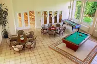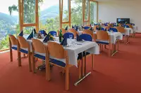 Großer Tagungsraum, Konferenzraum, Fernsehraum, Seminarraum mit Panoramablick, Spielzimmer, Film-, Dia-, Overheadprojektor, Beamer, Fotokopiergerät, TV/Video, Stereoanlage, W-Lan, Tischtennisplatte, Billardtisch, XXL-Kicker, Flügel, Gesellschaftsspiele, 50 AutoparkplätzeBemerkungen