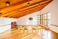 Boulderecke, Tischtennisraum,Kickerraum, Teeküche, Ski- und Trockenraum , Tagungstechnik, Beamer, Tischtennisplatte, Klavier, Liederbücher, ParkplätzeFreizeit