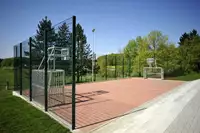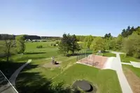 Hartplatz mit Toren und Basketballkorb (mit Flutlicht). Rasen-Bolzplatz mit Toren, Außen-Tischtennisplatte, Discgolfanlage, Lagerfeuerstelle, Grillplatz, Seilbahn, Drehscheibe, „Dreh mich – Wipp mich“, Reckstange