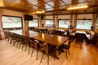 Aufgrund der vorherigen Nutzung als Landhotel und Gaststätte gibt es einen großen Gastraum mit professioneller Theke. Diese läd zu gemütlichen Feierstunden mit Musikanlage ein. Der Gastraum hat dazu ein großes TV.