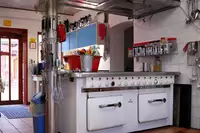 13 Betten (Doppelzimmer, 1 Einzelzimmer), 3 Bäder, Fernsehzimmer, große Wohnküche komplett eingerichtet, Speisekammer, Kaminplatz, Spiel- und Leseplatz, großer Saal (ideal für Hochzeiten).