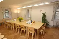 Meditationsräume, Raum der Begegnung, Lesezimmer, Musikzimmer, Tagungsmedien, Diaprojektor, Overheadprojektor, Beamer, E-Screen, Fotokopiergerät, Fernsehgerät, Videorecorder, Stereoanlage, Internetzugang, Klostergarten, Klavier, Gesellschaftsspiele, Ballspielplatz, Tischtennisplatte, ausreichend ParkplätzeFreizeit