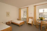 Bitte beachten Sie, dass für Selbstversorger nur 28 Betten in elf Zimmern zur Verfügung stehen. Für Hochzeiten o.ä. ist unser Haus leider nicht geeignet. Das Haus ist ein Ort der Stille, die Tagesstruktur ist geprägt durch die vier Stundengebete. Auf Wunsch geistliche Begleitung durch Mitglieder der Hausgemeinde. Zwei Zimmer mit Bad sind rollstuhlgerecht. Alle Preise auf Anfrage.Lage