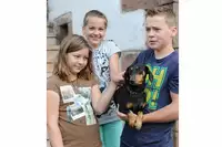 Sandra, Jörg, Rose, Pearl, Kurzer, Oggy und Laya im September 2020