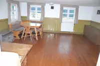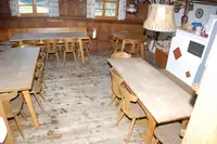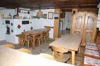 Es handelt sich um ein altes Bauernhaus (mit Hüttencharakter) fast ausschließlich aus Holz errichtet und mit Schindeln verkleidet. Parkplätze für 4-5 Autos sowie 2 Garagen sind neben dem Haus vorhanden. Die Hütte bietet Platz für 25 Personen. Optimal geeignet für Gruppen, die in Ferienfreizeit gehen.Im Erdgeschoss ist noch ein großer Abstellraum mit zusätzlichem Getränkekühlschrank vorhanden. Hier ist sowohl der Getränkevorrat sowie das Leergut gelagert. Vom Keller aus haben Sie Zugang zu einer kleinen Terasse, Gartenmöbel (Stühle, Tische, Sonnenschirme) befinden sich auch im Keller. Für Familienfeiern, Geburtstage usw. kann bei rechtzeitiger Bestellung auch Faßbier (50l bzw. 25 l) inkl. Zapfeinrichtung bereitgestellt werden.