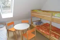 Kapazität: 19 Zimmer mit insgesamt 75 Betten (ganzjährig) und zusätzlich 13 Bungalows mit insgesamt 75 Betten (von Mai bis September). Sanitäre Anlagen zentral in jedem Unterkunftsbereich. 5 Zimmer rollstuhlgeeignet,Außengelände barrierefrei. 5 Gemeinschaftsräume für Unterricht, Sport, Spiel, kreatives Gestalten und Disco, Fußballkicker, Billardtisch, Beamer, W-Lan, Tagungsmedien