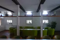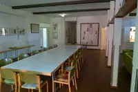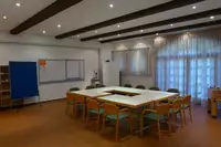 Zur Konzeption unseres Bildungshofs gehört selbstverständlich eine behindertengerechte Ausstattung. Alle Räume und Sanitäreinrichtungen sind rollstuhlbefahrbar. Ein Aufzug bringt Sie in die 1. Etage. Der Bildungshof (Selbstversorgerhaus) verfügt über eine komplett eingerichtete Küche.Auf Wunsch organisieren oder vermitteln wir einen Kochservice. Darüber hinaus finden Sie im Ort mehrere Restaurants, Cafés und Geschäfte, die eine optimale Verpflegung gewährleisten. Das Mitbringen von Haustieren ist im Bildungshof nicht gestattet.
