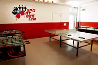 Die Bildungsstätte der Sportjugend Berlin liegt im Bezirk Charlottenburg und bietet eine ideale Anbindung an die City und das Umland. Das Grundstück ist eingebunden in das Gelände des Olympiastadions.Der Grunewald mit Havelchaussee und das Freibad Olympiastadion, die Waldbühne und der Glockenturm (Aussichtsplattform) sind in wenigen Minuten erreichbar und bieten interessante Möglichkeiten zu verschiedenen Freizeitaktivitäten. Der Bahnhof "Zoologischer Garten", der Kurfürstendamm und das historische Zentrum in Mitte sind vom nahe gelegenen U-Bahnhof "Olympiastadion" (ca. 10 Min. Fußweg) mit der Linie 2 direkt erreichbar.