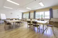 Seminarräume mit Beamer und Leinwand, Laptop, Bluetooth-Box, DVD-Player, Overheadprojektor, Fernseher, Flipchart, 2 Klaviere, 8-Kanal-Gesangsanlage, 30 ParkplätzeFreizeit