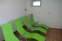 WLAN, großer Raum mit Schaumstoffklötzen zum Bauen und Sitzen, Tischtennis, Fußballkicker, Stepper, Sauna, kleine Sandkiste, Feuerstelle, gemauerter Grill, Liegewiese hinter dem Haus, Betten für 10 Personen, Hochbett für 3 Personen, ansonsten Matratzen zur individuellen PlatzierungFreizeit