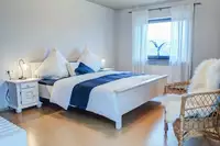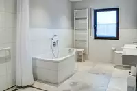 Die große Ferienwohnung im 1.OG ist barrierefrei und somit ideal für ältere Gäste und für Rollstuhlfahrer. Ein barrierefreier Zugang zur Wohnung ist über die Terrasse möglich.
