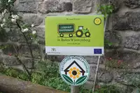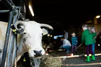 Unterhalb des Burggebäudes betreiben wir als Familienbetrieb einen Biobauernhof. Unsere Fläche von rund 90 Hektar bewirtschaften wir mit 40 Mutterkühen, Kälbern und Ackerbau. Es gehören außerdem noch 12 Hektar Wald zum Burgbesitz.